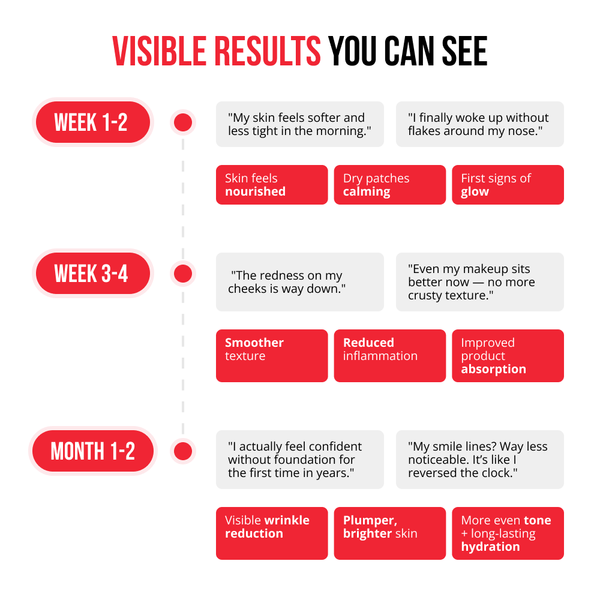 We offer a 30-day money-back guarantee. If you don't see visible improvements in skin texture, hydration, and clarity, return it for a full refund. Most customers see results within 2-3 weeks of consistent use.