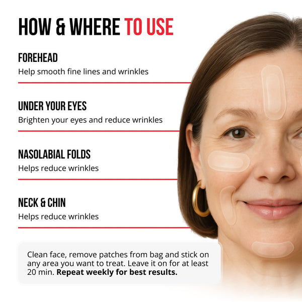 Innovative Self-dissolving microneedle patches contain more than 1900 micro-needles with active ingredients that dissolve under your skin, right where they are most effective in helping to reduce dark circles, eye bags and wrinkles all over your face.
