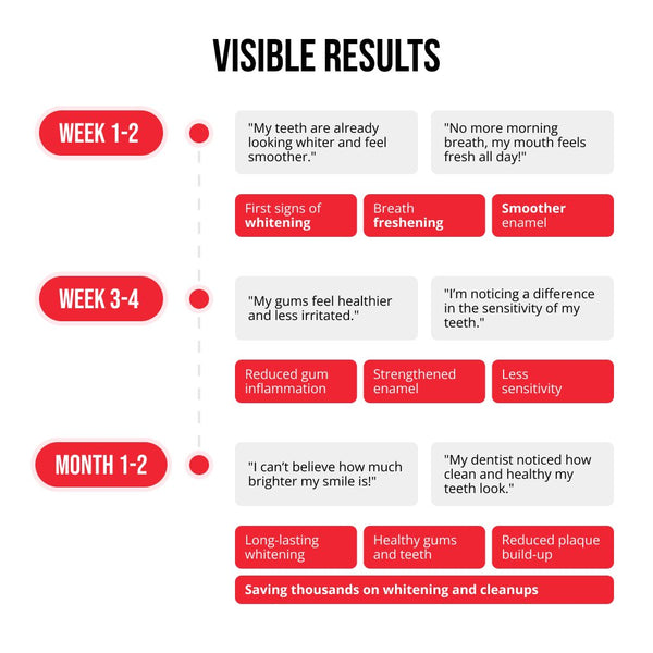 Harness the power of nature with our unique volcanic soil formula that actively rebuilds weakened enamel with essential minerals.